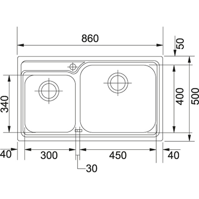 Має дві чаші розміром 450х400х180 мм основна і 300х340х180 мм додаткова. Комплектується сифоном.