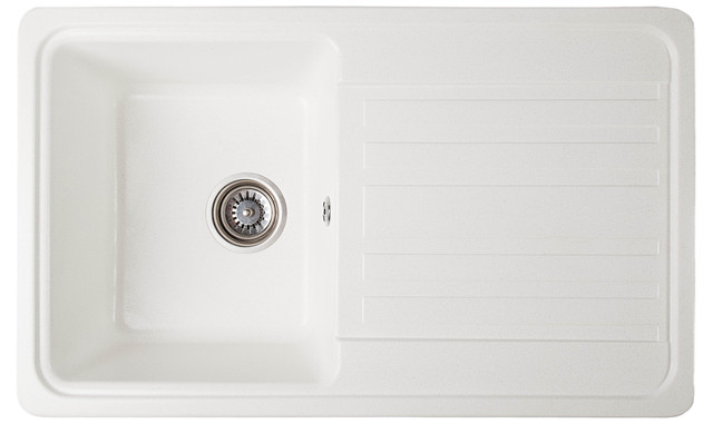 Опис: Гранітна бежева мийка прямокутної форми Valetti Europe модель №17 з переливом і вирізом отвори під змішувач під замовлення покупця. Розміром 76 * 46 см.